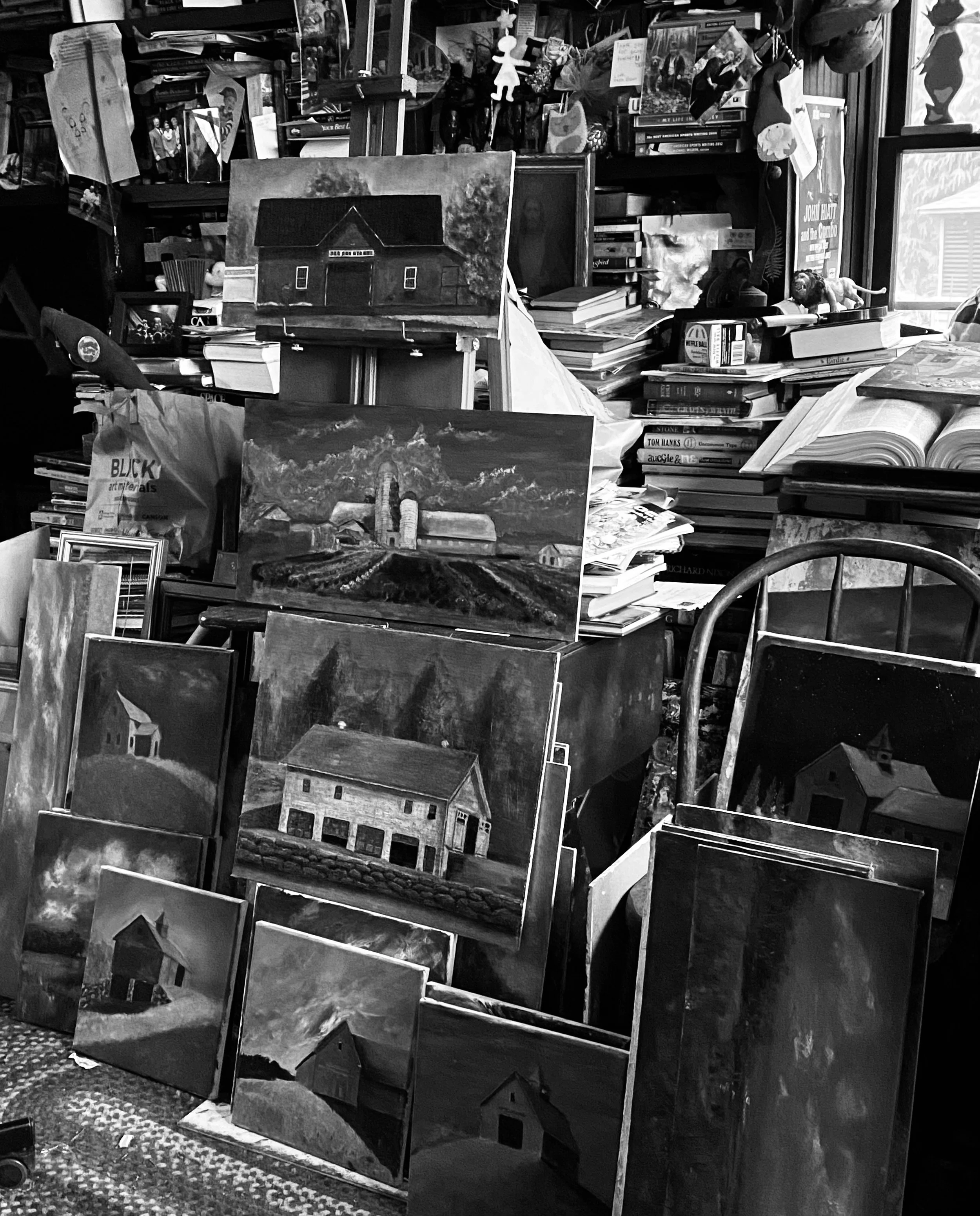 Whether pen & ink, watercolors, acrylics, cold wax or traditional oils; Maciolek continues to focus his interests on ordinary things that are embedded and hidden in the imperfect. A love for things that are timeworn, weathered, or half-broken, have been entrenched in Mark’s life and even embodied in the restoration of their family’s 1832 homestead. Lately, Maciolek’s interests can be found in that of old barns that cry-out for a second chance–if only saved on canvas. Or grand Belted Galloways & sublime Bisson–framed by fields dotted with stone walls or wide-open prairies that make painting to die for. Admiring the charming beauty of 18th and early 19th Century homes and outbuildings has driven the artist to capture their essence as they, for many, struggle for their story to be told and remembered.